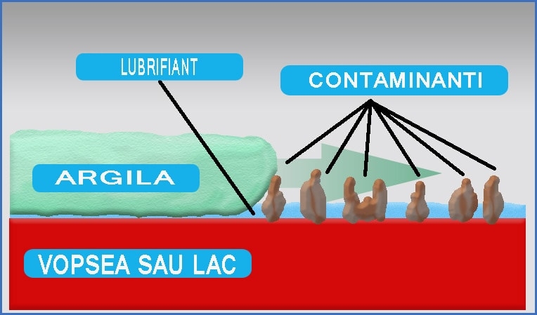 După ce ați spălat mașina, folosiți un Clay Lube, care este un lubrifiant excelent pentru argilă. Cu ajutorul lui, argila alunecă pe suprafață și reține în structura sa toate tipurile de contaminanți. Utilizată cum trebuie, argila este non-abrazivă (în cazul în care este o argilă blândă).